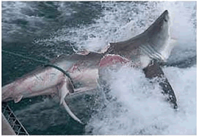 Eles abriram o corpo do tubarão onde encontraram os restos do homem.