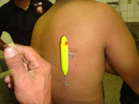 Já era final do dia quando dois pescadores chegaram ao hospital. Um deles tinha, nas costas, um anzol enroscado. A dor era suportável.